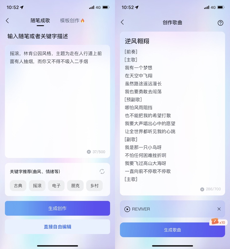 描绘内容为:“摇滚,林肯公园风格,主题为走在人行道上前面有人抽烟,而你又不得不吸入二手烟”。生成效果答非所问。