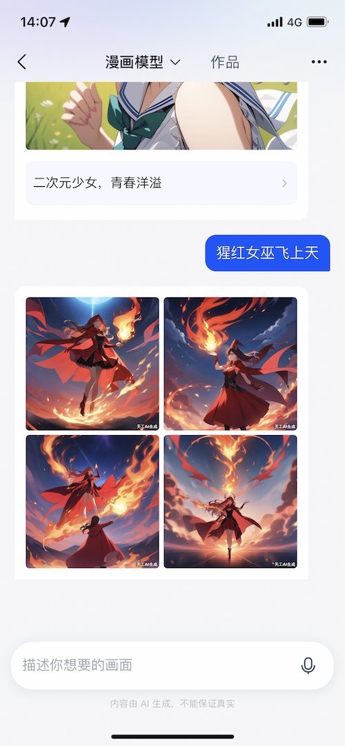 天工的 AI 生图功用非常简练,输入指令之外就只能挑选图片份额。